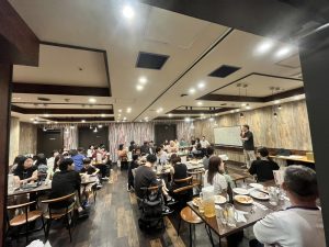 今回は、室内でのディナーを楽しみながら、グループ対抗の「あっち向いてほい」トーナメント戦で大盛り上がり!