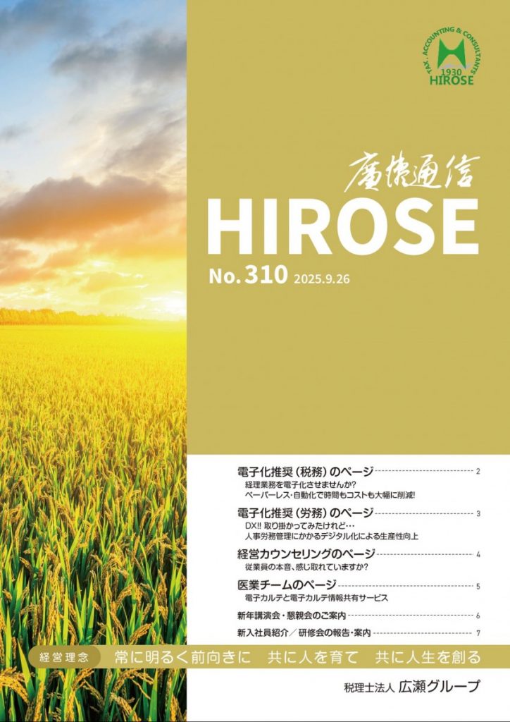 税理士法人広瀬グループの最新ニュースをお届けする広報紙「廣瀨通信」の最新版を公開しました。 | |||